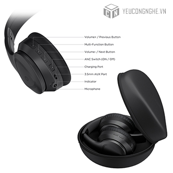 Chống ồn chủ động (ANC) giúp loại bỏ tạp âm. Âm bass chất lượng cao với màng loa 40mm